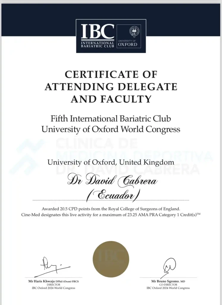 ÚNICO MÉDICO EN SU ESPECIALIDAD CERTIFICADO POR T.H. CHAN SCHOOL OF PUBLIC HEALTH OF HARVARD (BOSTON) & POR IBC-UNIVERSITY OF OXFORD (International Bariatric Club)